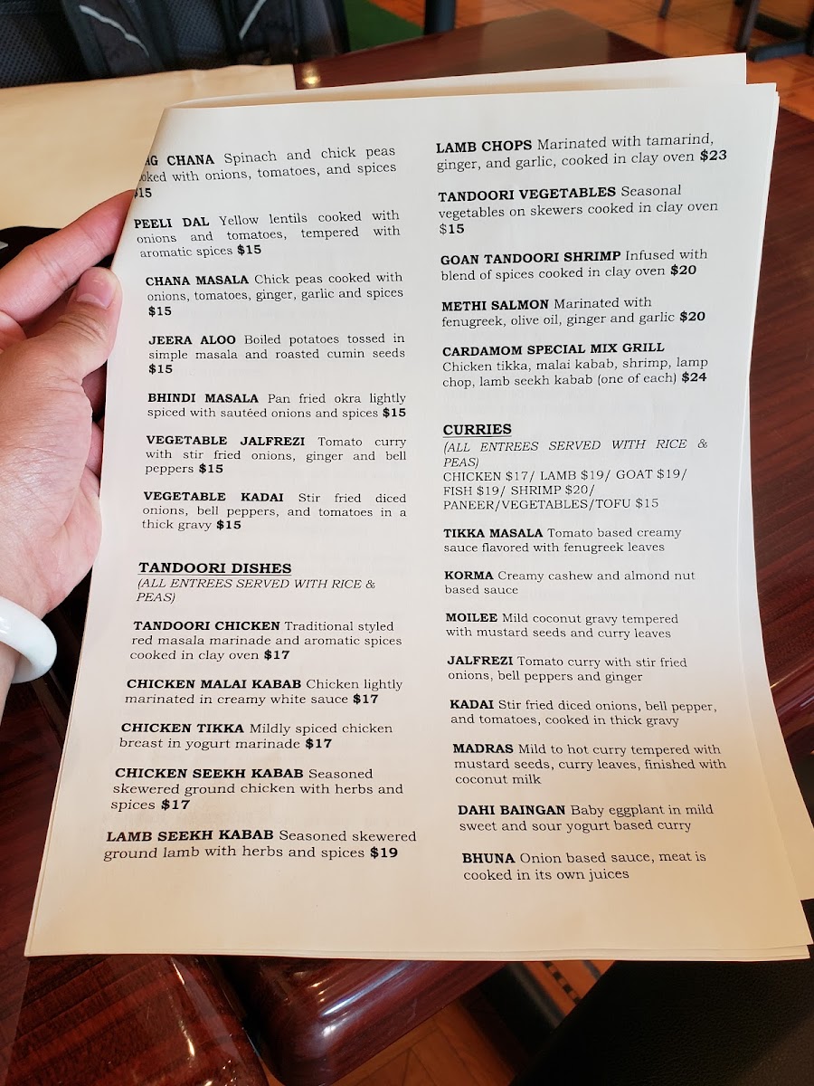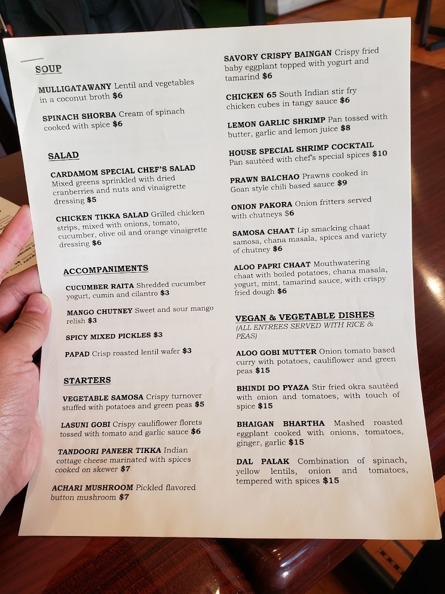 Nestled in the heart of Sunnyside, Queens, Cardamom Indian Cuisine offers a delightful culinary escape into the vibrant flavors of India. The menu features a rich selection of dishes, from aromatic biryanis and tender tandoori specialties to flavorful curries and fresh naan. Whether you're craving a classic butter chicken, a fiery vindaloo, or something unique like their seasonal vegetable dishes, the options are crafted with care to satisfy all tastes. The Cardamom Indian Cuisine Menu brings together authentic spices and fresh ingredients, making each meal a true representation of Indian culinary tradition. You’ll find dishes that are comforting, bold, and bursting with flavor, perfect for any occasion.