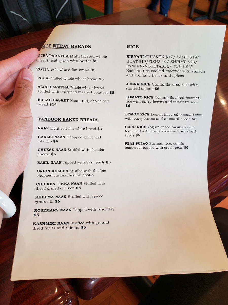 Naan roti, two choices of bread.